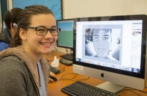 When we visited Mr. Torrano’s Digital Media class to see what impact our Classroom Grant for software and 3D printers was having, we were immediately struck by how self-sufficient the students were. Upon entering the classroom, they each went to a computer and started working on their own projects which ranged from doing graphic design on Adobe Illustrator, designing a 3D building using SketchUp or creating their own prototypes on Tinkercad to print using the 3D printer.