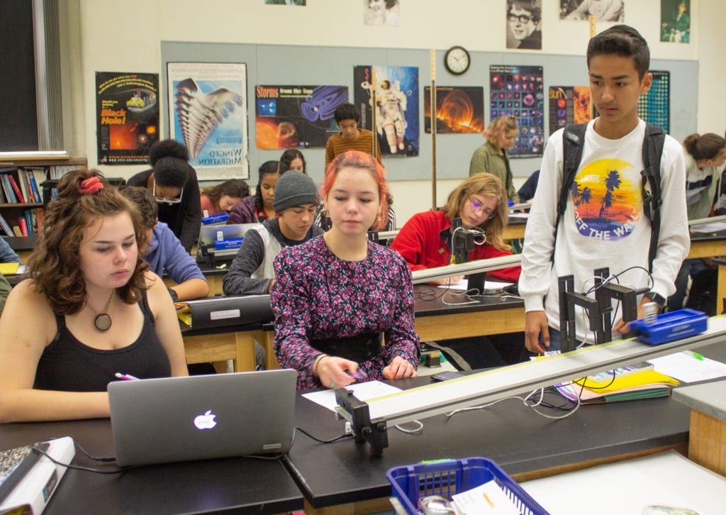 The Schools Fund awarded a Strategic Impact Grant to create a state-of-the-art, technology-rich laboratory for the new Physics 1 class for 9th grade. Physics 1 was designed to be full of lab experiments to offer students “a hands on, minds-on course that emphasizes inquiry and investigation.” Our Strategic Impact Grant supported “60 labs that are designed to hook students and cultivate enthusiasm for science that will not only lead to success in Physics 1, but also reverberate into chemistry, biology, and the science electives that students will take in their sophomore, junior and senior years,” explained Berkeley High science teachers.