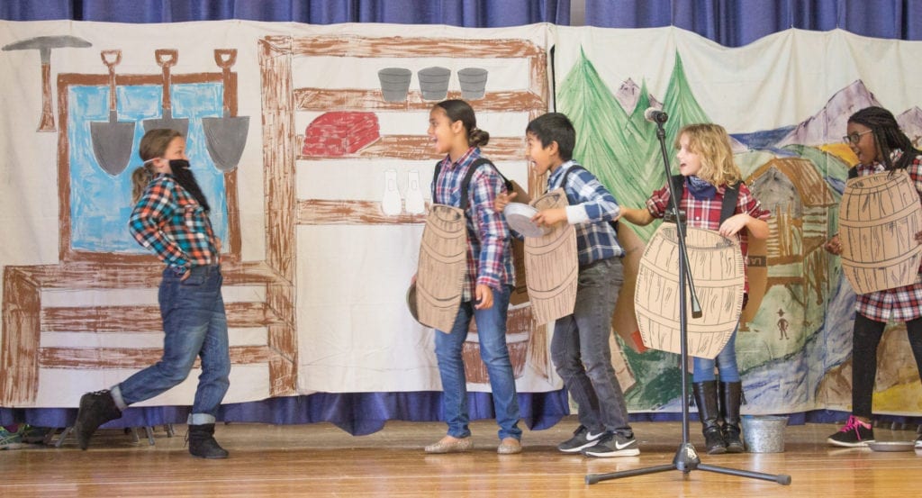 This month, Berkeley Arts Magnet (BAM) fourth graders performed two plays set during the Gold Rush and we were lucky enough to attend a dress rehearsal. Ms. Khare has been supported by Classroom Grants from the Schools Fund for the past 20 years to hold an annual production with her classes.