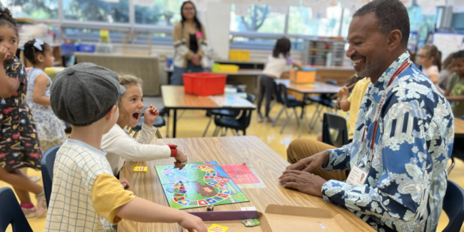 Bob is so consistent and invested in the kids. He has a connection with all of them and they readily call him over during math centers for help. When he leaves, they all call, “Bye Bob!” and he’s off to the next class. He’s very flexible and rolls with whatever we have going on. If there is a sudden change in the schedule or even when we go on a field trip, Bob will volunteer to come along. He is a true part of my classroom community and a person I have come to rely on.