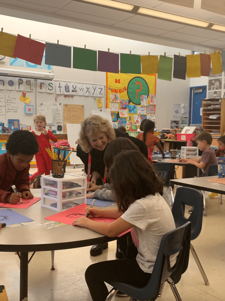 Her support doesn’t go unnoticed! After nine years working together, Miss Libby and Miss Marcia have the easy rapport of two friends that clearly appreciate each other. Libby knows that Marcia is someone she can rely on. She even switched her art instruction days to Thursdays so she could have Marcia in the room! They are each other’s sounding board as they debrief after the day or the lesson. Libby comments that while she is always in “Teacher Mode” with students, juggling many hats and sometimes facilitating tough conversations, what is wonderful about having Marcia around is that she gets to come in and simply be a warm, comforting adult presence. “Kids need that. Kids need both.”